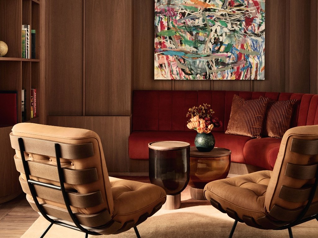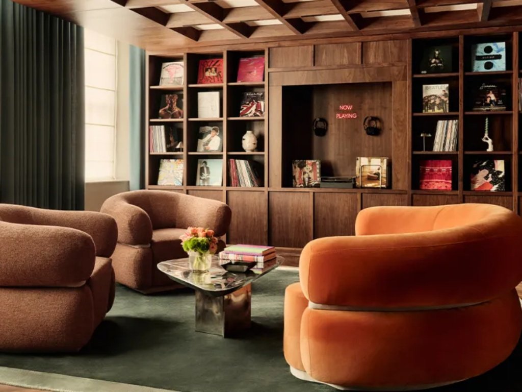 Σε έναν άλλο όροφο, οι επισκέπτες εισέρχονται σε έναν χώρο που θυμίζει σαλόνι ενός σύγχρονου townhouse: ένα πιάνο Steinway & Sons δεσπόζει στο δωμάτιο, ενώ ένα μπαρ, ένα μεγάλο τραπέζι φαγητού και μια γωνιά μουσικής με πικάπ και συλλογή δίσκων δημιουργούν την αίσθηση ενός χώρου σχεδιασμένου για χαλάρωση και κοινωνικοποίηση. Δεν είναι δύσκολο να φανταστεί κανείς τις βραδιές όπου η μουσική, η συζήτηση και η ωρολογοποιία συναντιούνται στο ίδιο τραπέζι.