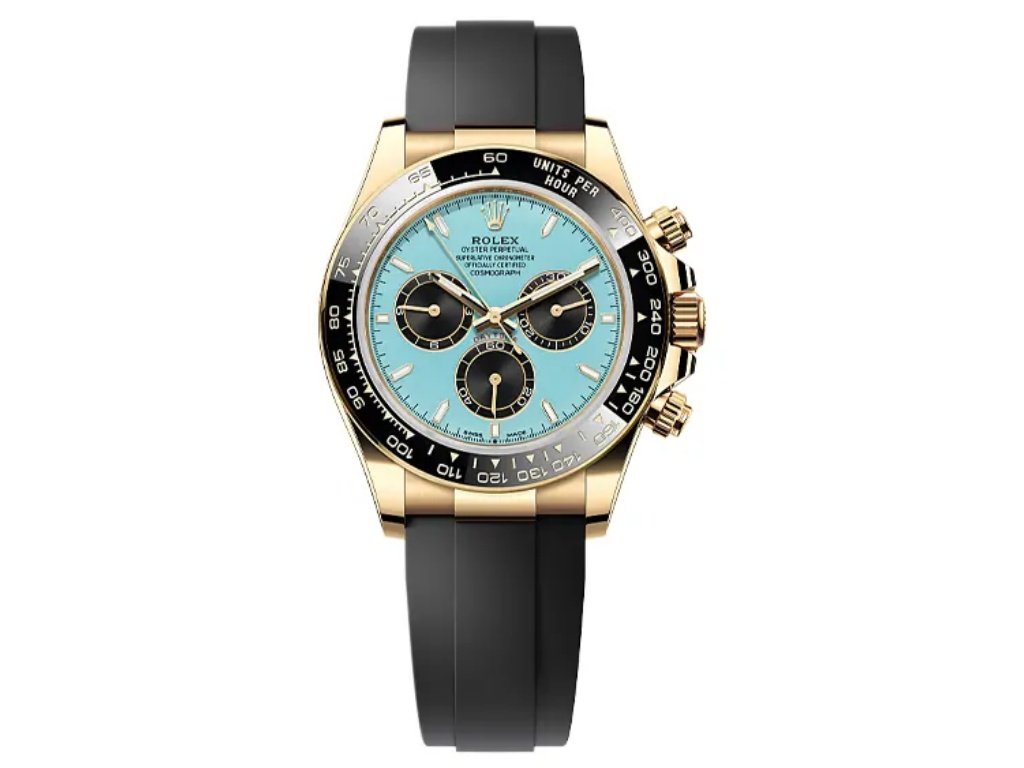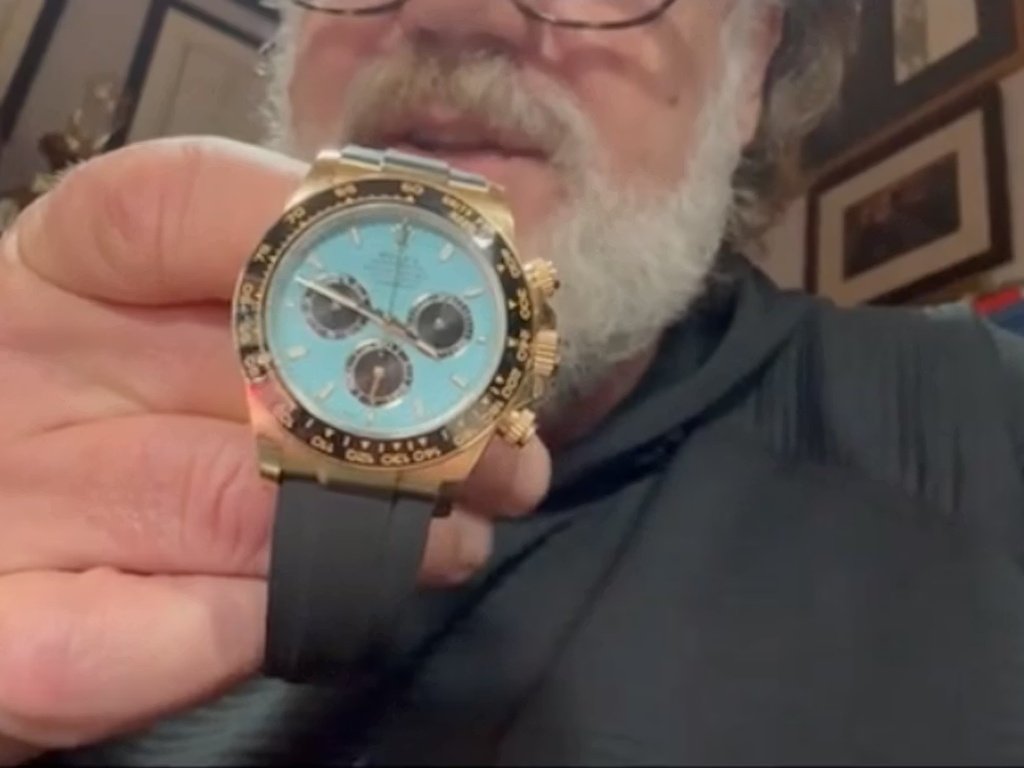 Οι επιλογές του αποκαλύπτουν ένα γούστο που κινείται με άνεση ανάμεσα σε διαφορετικούς κόσμους της ωρολογοποιίας. Στον έναν άκρο βρίσκονται μοντέλα που αποτελούν ήδη σύγχρονα σύμβολα. Το Rolex Cosmograph Daytona με την κίτρινη χρυσή κάσα και το έντονο τιρκουάζ καντράν είναι ένα τέτοιο παράδειγμα. Ένα ρολόι που συνδυάζει την κλασική φόρμα του Daytona με μια τολμηρή χρωματική επιλογή, ικανή να τραβήξει αμέσως το βλέμμα όταν εμφανίζεται κάτω από το μανίκι ενός σακακιού.