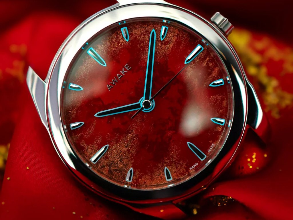 Το πρώτο στοιχείο που μαγνητίζει το βλέμμα είναι το καντράν. Κατασκευασμένο εξ ολοκλήρου στο εργαστήριο της Awake στο Ανόι, κάθε καντράν απαιτεί σχεδόν δεκαπέντε ώρες σχολαστικής, χειροποίητης εργασίας. Η τεχνική Sơn Mài βασίζεται στη διαδοχική εφαρμογή φυσικής λάκας, χρωστικών και μεταλλικών φύλλων, δημιουργώντας μια επιφάνεια με εντυπωσιακό βάθος και πολυδιάστατο χαρακτήρα.
