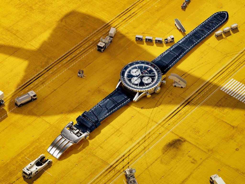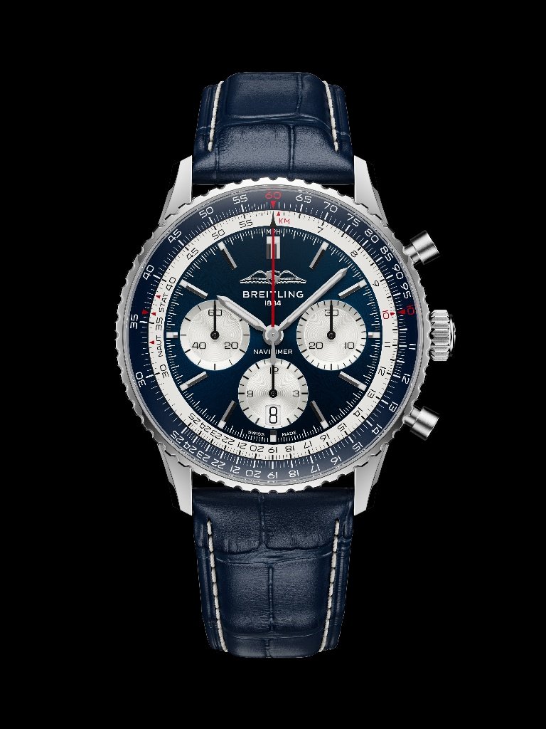Η νέα έκδοση του Navitimer αντλεί άμεσα από αυτή την εικόνα. Το μπλε καντράν θυμίζει το χρώμα της στρατόσφαιρας όπως τη βλέπει κανείς από το Concorde, ενώ τα λευκά υποκαντράν δημιουργούν έντονη αντίθεση που παραπέμπει στο χαρακτηριστικό προφίλ του αεροσκάφους. Ο λευκός εσωτερικός λογαριθμικός κανόνας διατηρεί την αυθεντική ταυτότητα του μοντέλου, ενώ το μπλε λουράκι από δέρμα αλιγάτορα ολοκληρώνει μια αισθητική που ισορροπεί ανάμεσα στο vintage πνεύμα και τη σύγχρονη κομψότητα.