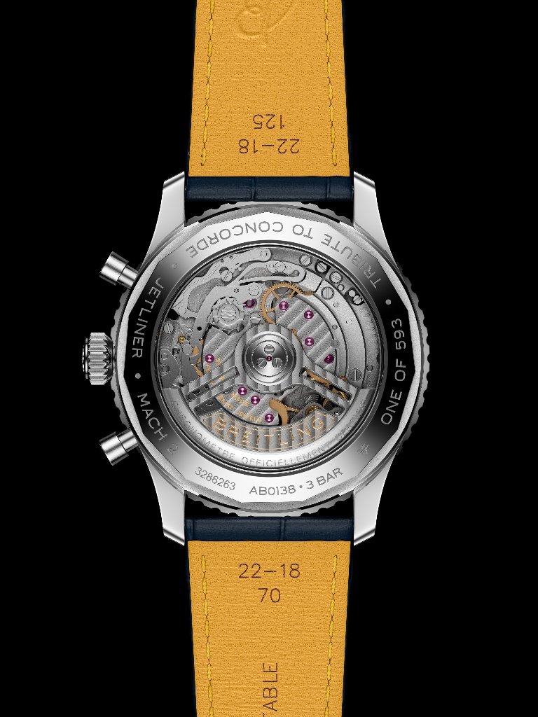 Η έκδοση είναι περιορισμένη σε 593 κομμάτια, αριθμός που αποτελεί αναφορά στους κινητήρες Olympus 593 που κινούσαν το Concorde. Στο πίσω μέρος της κάσας, χαραγμένες ενδείξεις όπως “One of 593”, “Tribute to Concorde”, “Jetliner” και “Mach 2” υπογραμμίζουν τη συλλεκτική διάσταση του ρολογιού και τον άμεσο δεσμό του με το υπερηχητικό αεροσκάφος.