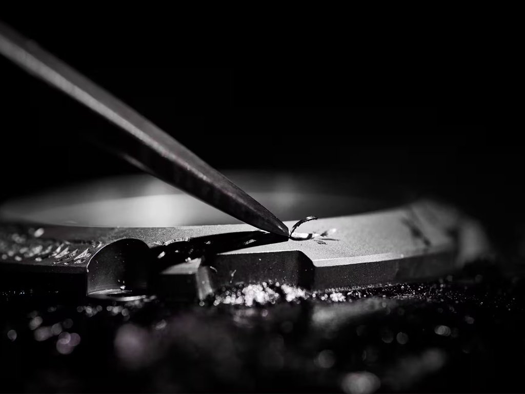 Αυτό που ξεχωρίζει αμέσως είναι η στεφάνη, η οποία αντλεί έμπνευση από το kurogane-tsuba, τη διακοσμημένη λαβή του katana. Χειροποίητη από τον Kobayashi Masao, διαθέτει χαραγμένο το σχέδιο ενός φοίνικα — του μυθικού πουλιού της καλής τύχης και της αναγέννησης. Το μοτίβο εκφράζει τόσο την ομορφιά της χειροτεχνίας όσο και το δυνατό, ευγενές πνεύμα του σαμουράι, όπως αυτό ενσαρκώνεται από το σπαθί.