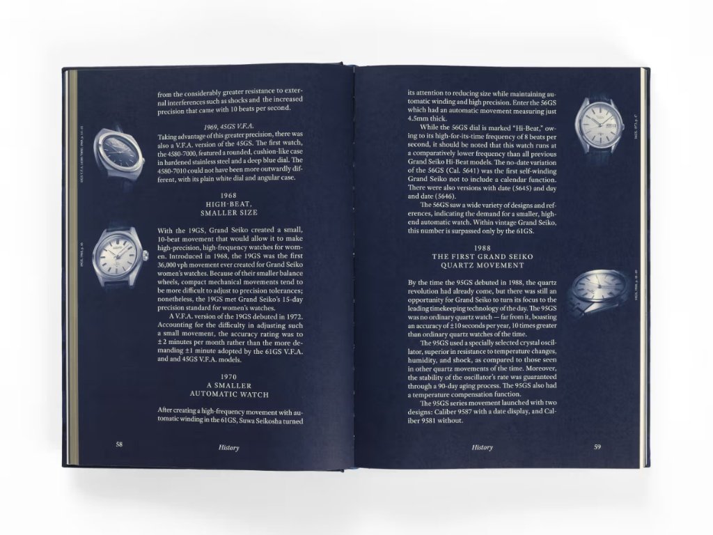 Ο τόμος των 320 σελίδων καταγράφει την πορεία της μάρκας από την ίδρυση της το 1960 έως σήμερα, καλύπτοντας τόσο τα βασικά τεχνικά επιτεύγματα όσο και την εξελικτική της προσέγγιση στον σχεδιασμό, την ακρίβεια και τη φινιρισμένη κατασκευή. Η αφήγηση υποστηρίζεται από εκτενές φωτογραφικό υλικό, τεκμηριώνοντας τη φυσιογνωμία της Grand Seiko χωρίς να περιορίζεται σε ένα απλό ιστορικό χρονολόγιο.