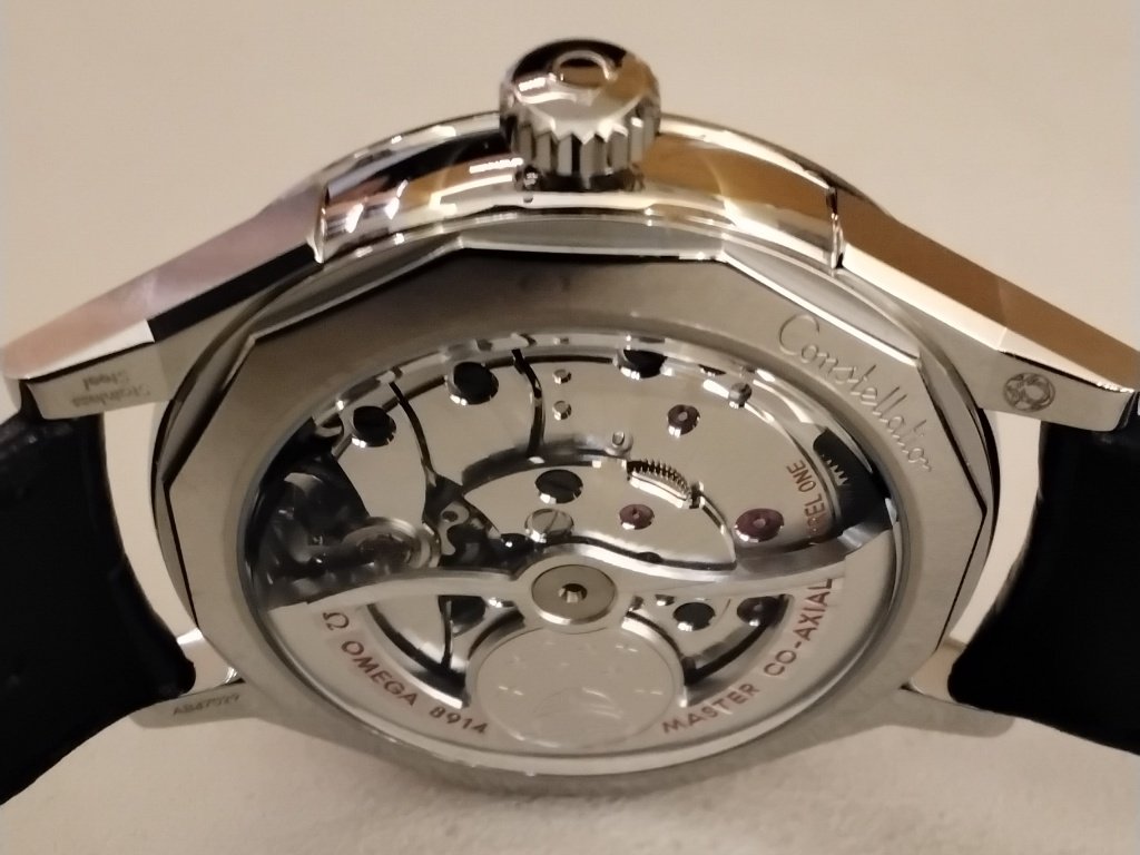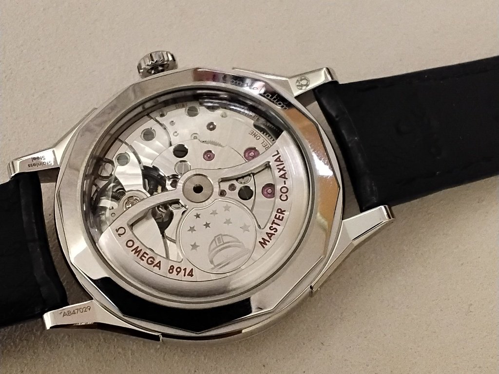 Γυρίζοντας το ρολόι μπορείς να θαυμάσεις τον νέο Co-Axial Master Chronometer calibre 8914, με συχνότητα 25.200 ταλαντώσεων/ώρα και απόθεμα ισχύος 60 ωρών. Ο μηχανισμός διατηρεί όλα όσα περιμένει κανείς από ένα σύγχρονο Omega: υψηλή σταθερότητα, αντοχή σε μαγνητικά πεδία έως 15.000 gauss και συνέπεια στην καθημερινή χρήση.