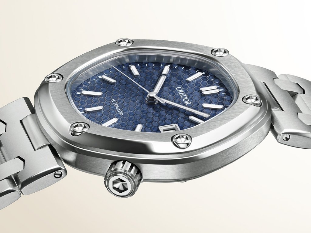 Τελευταίο αλλά εξίσου σημαντικό είναι το σίγουρα Credor Locomotive ref. GCCR995, σχεδιασμένο από τον Gerald Genta. Τώρα στην τρίτη του έκδοση από την αναβίωση του μοντέλου πριν από δύο χρόνια, αυτό το νέο καντράν του GCCR995 υιοθετεί το εξαγωνικό μοτίβο που υπήρχε στην προηγούμενη έκδοση με πράσινο καντράν, τώρα με ένα “μπλε” καντράν που η μάρκα αποκαλεί “Dawn Blue” και λέει ότι θυμίζει τον απαλό μπλε χρώμα του ουρανού την ώρα που τελειώνει η νύχτα και ξεκινά μια νέα μέρα, υποδηλώνοντας το λαμπρό μέλλον της Locomotive.