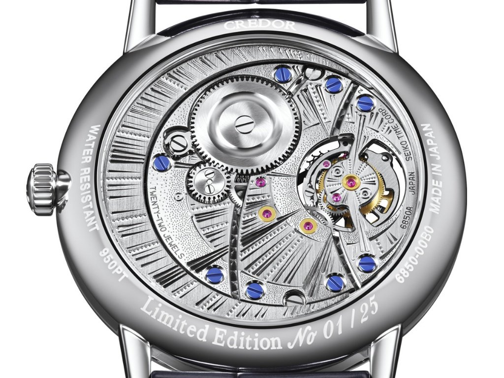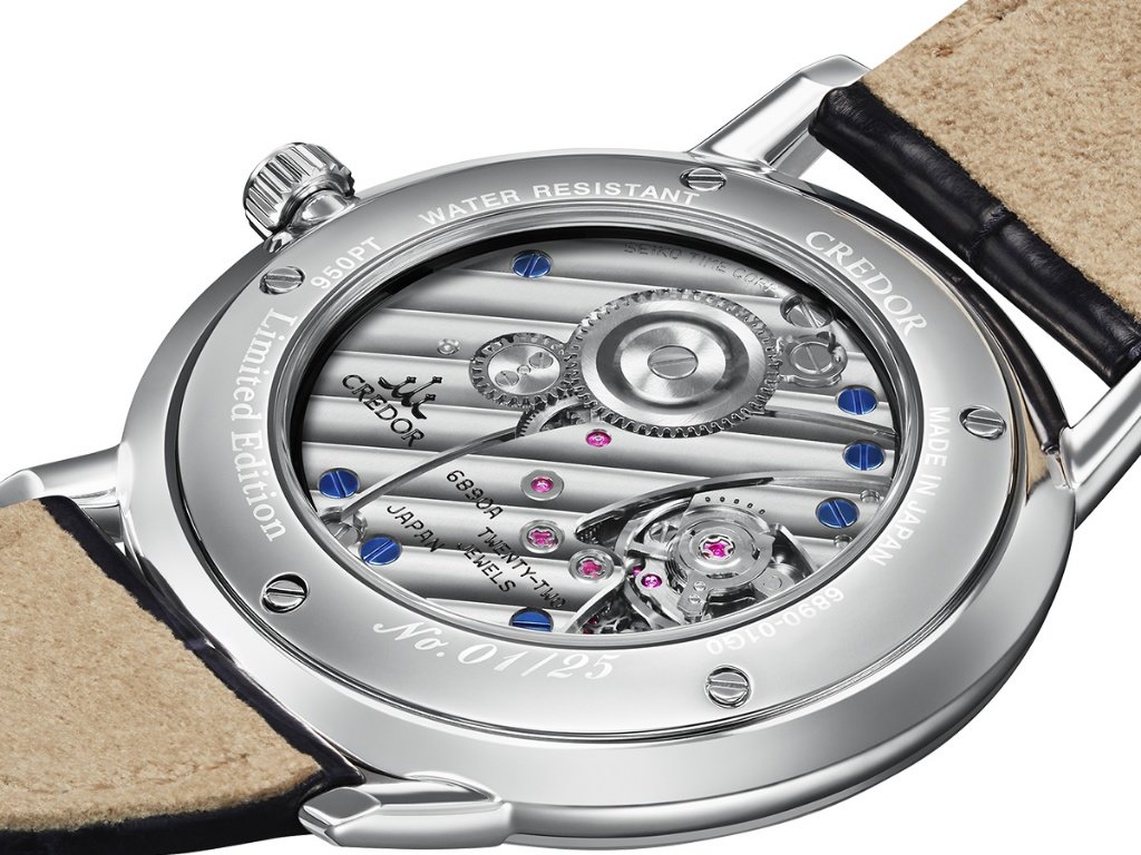 Στο εσωτερικό, το ρολόι φιλοξενεί τον αυτόματο Calibre CR01, ο οποίος είναι αποκλειστικός για την Credor. Προσφέρει αυτονομία 45 ωρών και λειτουργεί με συχνότητα 28.800 δονήσεων/ώρα.