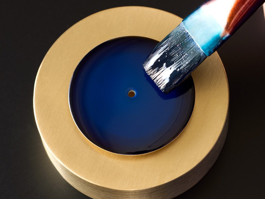 Το μπλε χρώμα σπάνια εμφανίζεται στις παραδοσιακές χειροτεχνίες Urushi από λάκα, καθιστώντας την παρουσία του σε αυτό το καντράν πραγματικά ξεχωριστή. Για να επιτευχθεί αυτή η λαμπερή μπλε διαβάθμιση, η λάκα εφαρμόζεται και γυαλίζεται δεκάδες φορές με το χέρι, μια διαδικασία που απαιτεί εξαιρετικά υψηλό επίπεδο δεξιοτεχνίας, καθώς διακριτική καμπυλότητα του καντράν απαιτεί ακριβείς προσαρμογές για να παραμένει το φινίρισμα ομοιόμορφο σε ολόκληρη την επιφάνεια του.