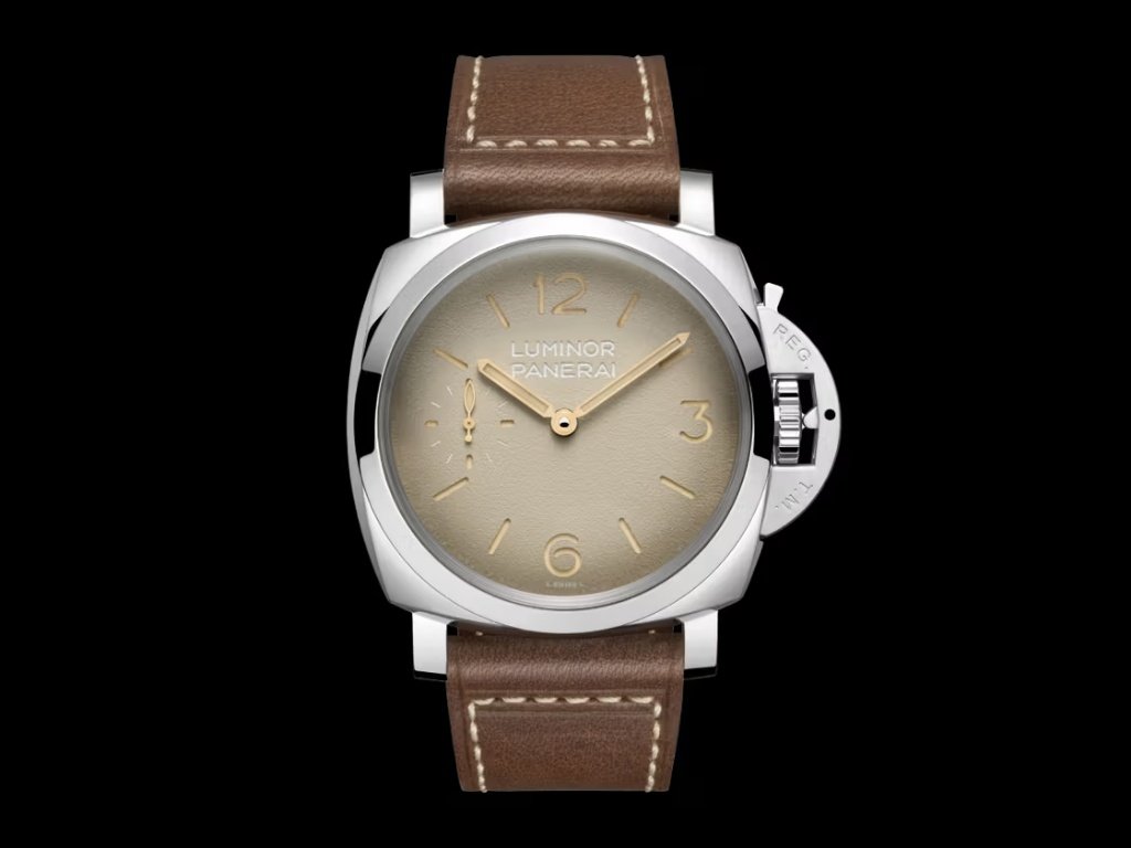 Ιδιαίτερη εντύπωση προκαλεί και το Luminor PAM01735, ένα επιβλητικό μοντέλο απο ανοξείδωτο σταάλι 47mm που αντλεί σχεδιαστικά στοιχεία από το ιστορικό Ref. 6152/1 και είναι ανθεκτικό στο νερό έως και 100 μέτρα. Το ιβουάρ ντεγκραντέ καντράν με “τροπική” αισθητική θυμίζει παλαιωμένα καταδυτικά όργανα της Μεσογείου, ενώ ο χειροκίνητος μηχανισμός P.3000 προσφέρει τριήμερο απόθεμα ισχύος και λειτουργία γρήγορης ρύθμισης ώρας. Η κυκλοφορία του έχει προγραμματιστεί για τον Ιούνιο του 2026 με τιμή 12.100 ευρώ.