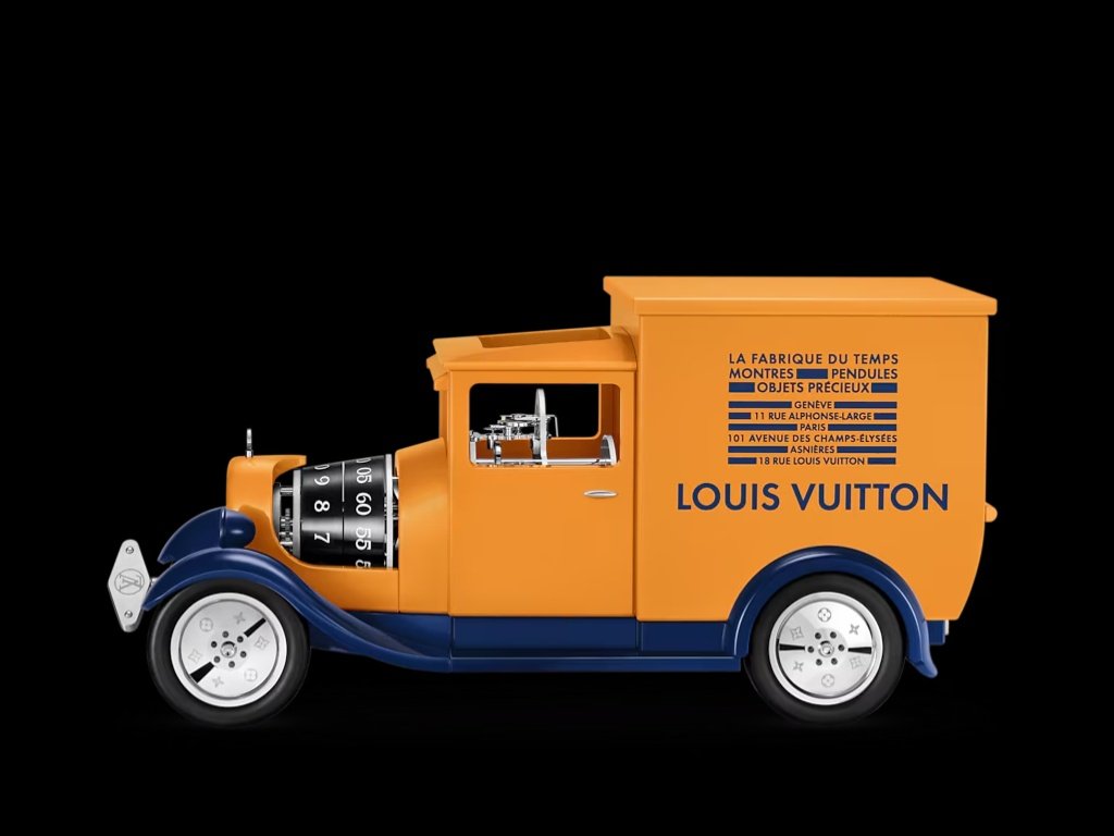 Το Louis Vuitton Camionnette δεν είναι μια απλή αναπαράσταση, αλλά μια αφηγηματική κατασκευή που συνδέει την ιστορία της μεταφοράς με την έννοια του χρόνου. Το ρολόι εμφανίζεται ως μια καλαίσθητη μικρογραφία οχήματος παράδοσης, ντυμένη στο χαρακτηριστικό σαφράν χρώμα του οίκου.