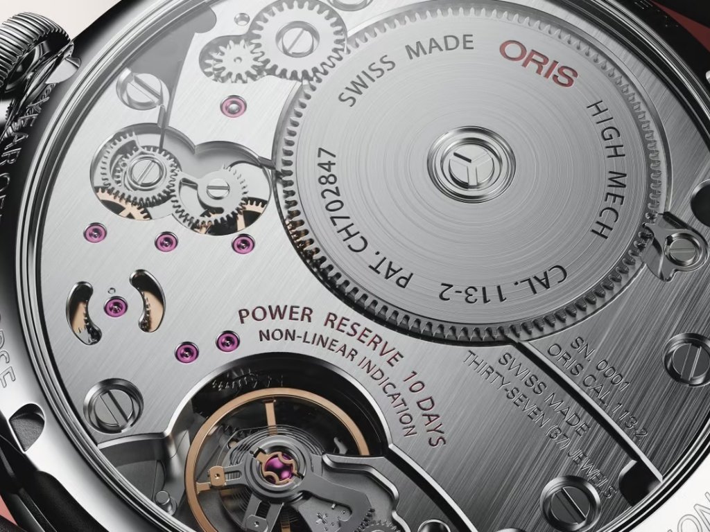 Το διαφανές πίσω μέρος αποκαλύπτει τον Oris Calibre 113, έναν χειροκίνητο μηχανισμό που αποτελεί βασικό πυλώνα της σύγχρονης τεχνικής ταυτότητας της μάρκας. Το εντυπωσιακό απόθεμα ενέργειας 10 ημερών επιτυγχάνεται μέσω ενός μεγάλου βαρελιού, προσφέροντας πρακτικότητα και μηχανική αξιοπιστία.