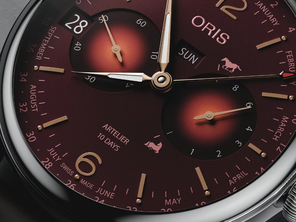 Το Έτος του Πύρινου Αλόγου προσφέρει πλούσιο συμβολικό υλικό, ωστόσο η Oris επιλέγει μια συγκρατημένη, ώριμη προσέγγιση. Το θέμα δεν επιβάλλεται στο ρολόι, αλλά ενσωματώνεται διακριτικά, τόσο σε επίπεδο χρωματικής παλέτας όσο και στη λειτουργική αρχιτεκτονική του καντράν.