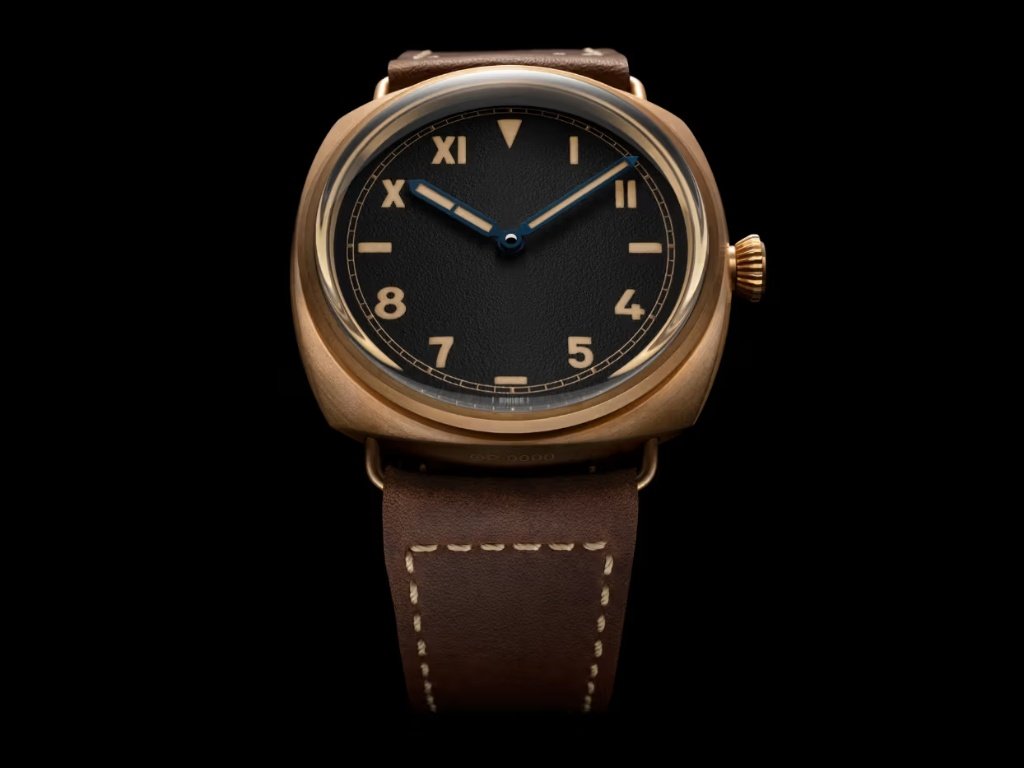 Το πρώτο κεφάλαιο της ιστορίας γράφεται με το Radiomir PAM01729, με κάσα 47mm από μπρούντζο, το οποίο αναβιώνει την αισθητική των πρώτων στρατιωτικών πρωτοτύπων της μάρκας. Το κράμα δεν επιλέχθηκε μόνο για την επιβλητική του παρουσία, αλλά για την ικανότητα του να μεταμορφώνεται. Η πατίνα που αναπτύσσεται με το πέρασμα του χρόνου καθιστά κάθε κομμάτι μοναδικό – ένα ζωντανό αντικείμενο που εξελίσσεται μαζί με τον ιδιοκτήτη του.
