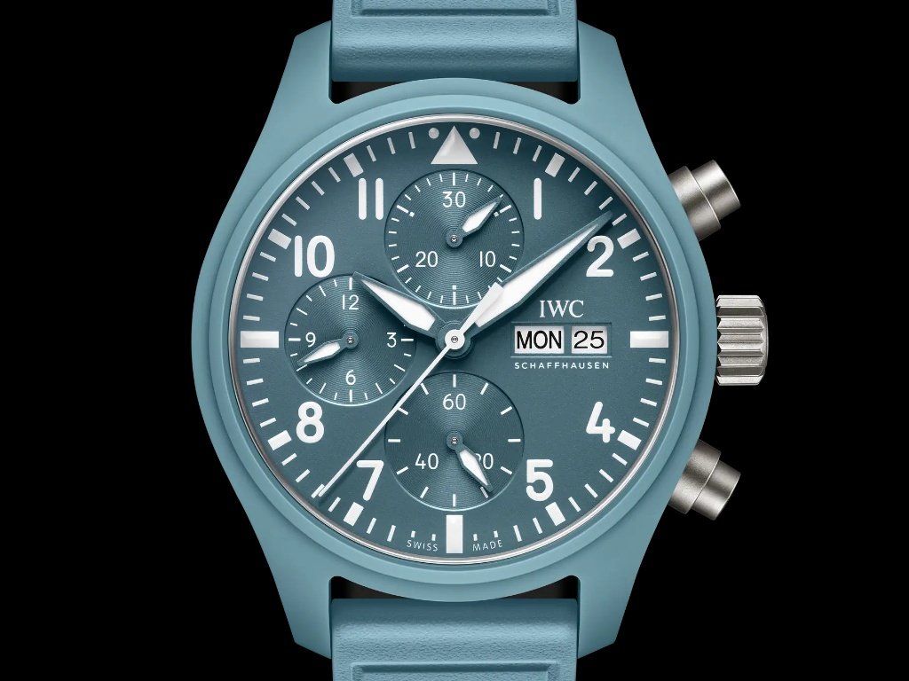 Η δημοφιλής σειρά “Colors of TOP GUN” της μάρκας, η οποία αποτίει φόρο τιμής στη Σχολή Μαχητικών Όπλων του Αμερικανικού Ναυτικού (TOPGUN), που είχε αρχικά έδρα το Miramar, αποδεικνύει ότι τα ρολόγια pilot δεν χρειάζεται πάντα να έχουν μαύρα καντράν. Εμπνευσμένο από τα ανοιχτόχρωμα μπλε μπλουζάκια που φορούσαν οι επίλεκτοι εκπαιδευτές του TOPGUN κάτω από τις στολές πτήσης τους, το IWC Pilot’s Watch Chronograph 41 Top Gun Miramar είναι ένα από τα πιο πολυσυζητημένα pilot ρολόγια του 2025, προσφέροντας ένα επιβλητικό μείγμα militaristic αισθητικής και σύγχρονου design. Με κλασική διάταξη tri-compax, το ρολόι τροφοδοτείται από τον αυτόματο μηχανισμό 69380 της IWC που εξασφαλίζει περίπου 46 ώρες απόθεμα ενέργειας.